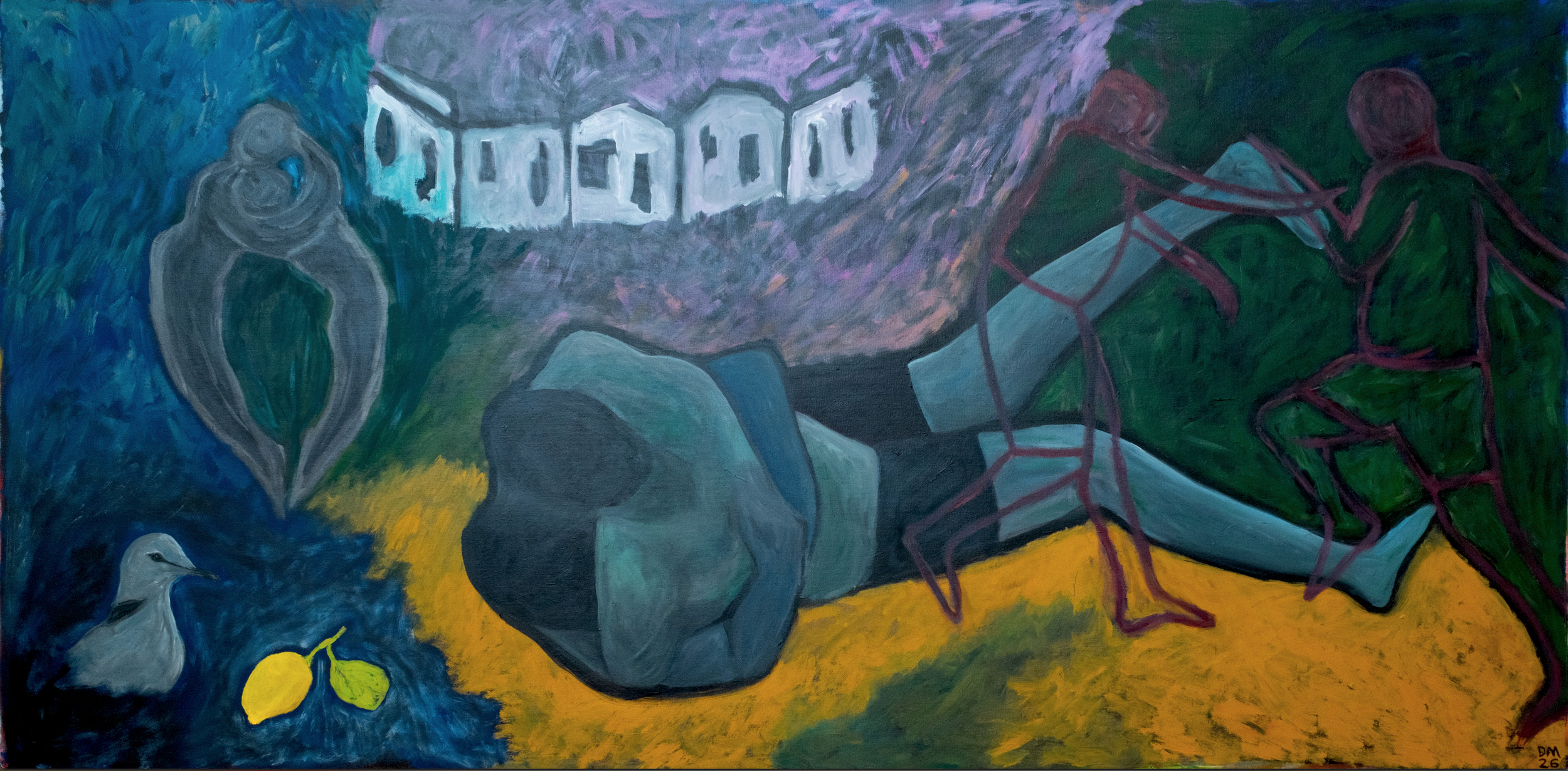 Wrestlers, acrylic on canvas, 200×100cm
